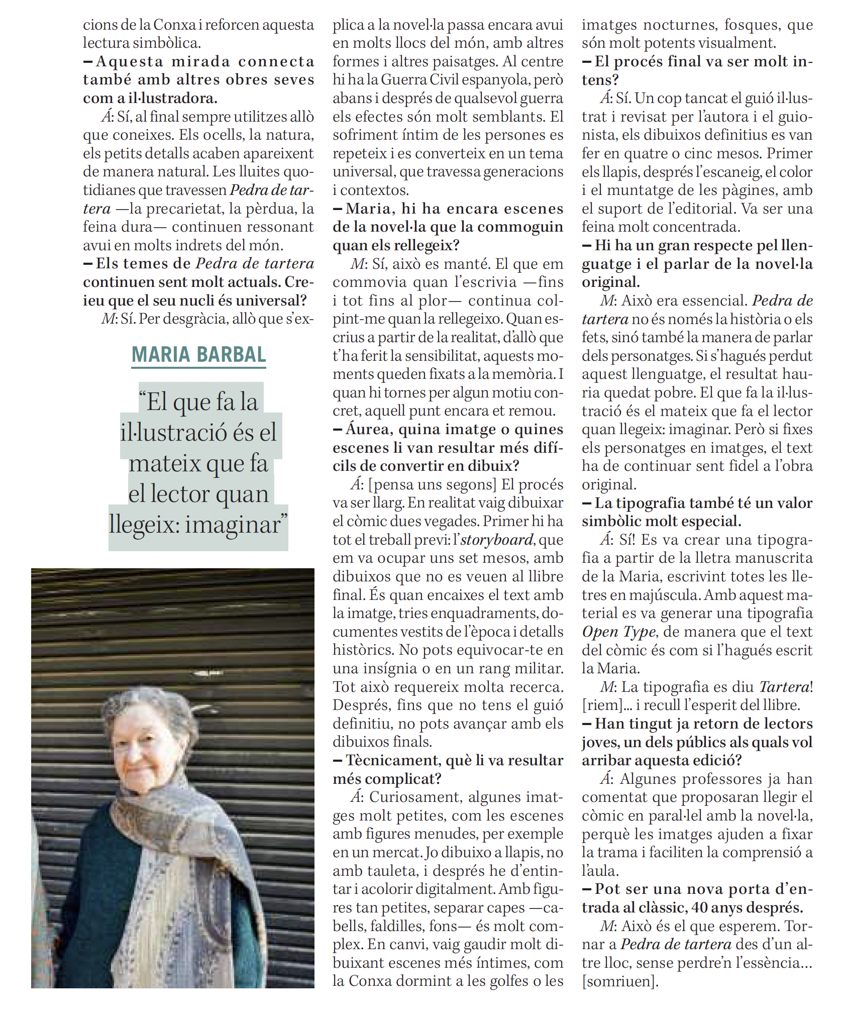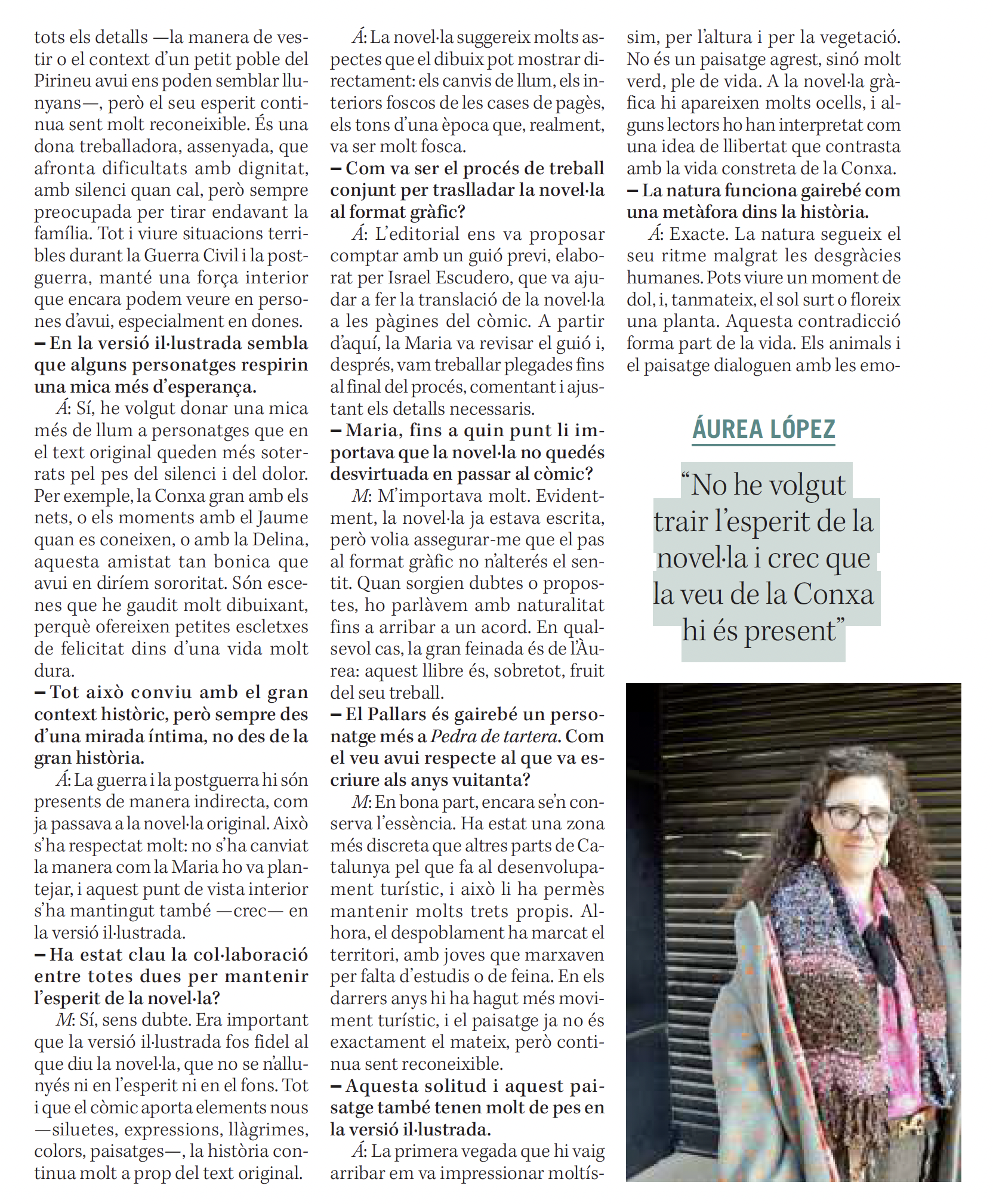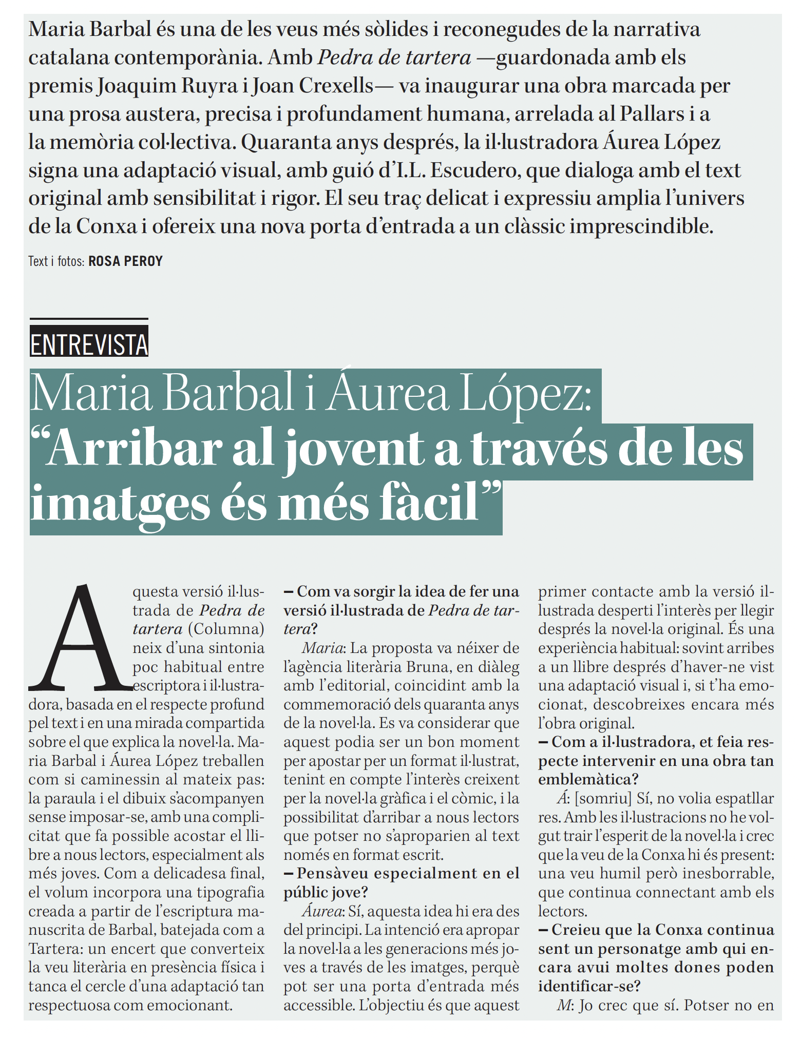 Maria Barbal és una de les veus més sòlides i reconegudes de la narrativa catalana contemporània. Amb Pedra de tartera —guardonada amb els premis Joaquim Ruyra i Joan Crexells— va inaugurar una obra marcada per una prosa austera, precisa i profundament humana, arrelada al Pallars i a la memòria col·lectiva. Quaranta anys després, la il·lustradora Áurea López signa una adaptació visual, amb guió d’I.L. Escudero, que dialoga amb el text original amb sensibilitat i rigor. El seu traç delicat i expressiu amplia l’univers de la Conxa i ofereix una nova porta d’entrada a un clàssic imprescindible.